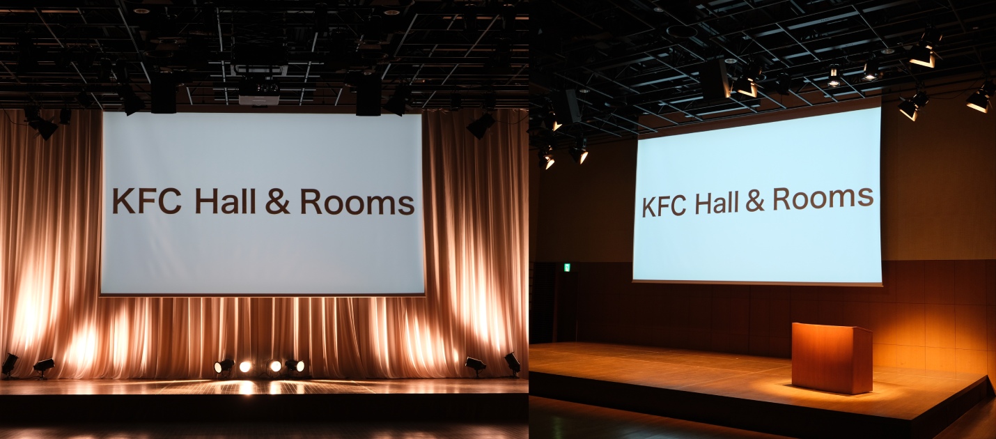360名収容のホールは照明演出も可能です。付帯のホワイエでは物販や特典会も行うことができ、トークショーやファンイベントにも最適です。