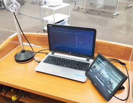 単独ネット回線、スクリーン、プロジェクター、ワイヤレスマイク、有線マイク、演台、ビデオカメラ、映像スイッチャー、音響ミキサー、配信用ノートパソコン、LED照明