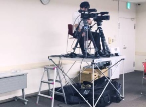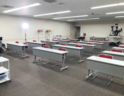 医療系公益財団法人様に医薬品に関するシンポジウムのライブ配信会場として11階貸し会議室をご利用いただきました。新型コロナの影響により当日は講演者の方々のみ会場にお集まりになり(一部中継による遠方からのご講演)、参加者の方はWebでの参加となりました。会場内に本格的な収録設備を設置し、単独ネット回線を用いての高品質な映像配信を行いました。ライブ配信の専門スタッフも常駐し、滞りなく開催されました。また、会場内には飛沫感染防止アクリルパネルを設置するなど感染対策を徹底して行われました。当会場では、簡易なライブ配信だけでなくプロ仕様の本格的な配信にも専門知識を備えたスタッフが対応いたしますので、お気軽にご相談ください。
