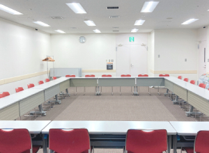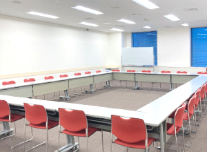 東京都内に拠点を構える国内人材育成サービス企業様に社内会議の会場として10階会議室をご利用いただきました。当日はロの字形式とし、出席者は1つのテーブルに2人レイアウトで、対面距離をしっかりと確保したレイアウトでした。当会場は、新型コロナウイルス対策をしっかりと行うことで、緊急事態宣言下でも数多くの企業様に会議やミーティングでご利用いただいております。