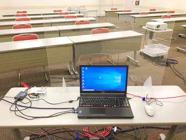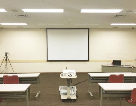 単独ネット回線、スクリーン、プロジェクター、ワイヤレスマイク、有線マイク、演台、ビデオカメラ、映像スイッチャー、音響ミキサー、配信用ノートパソコン、LED照明