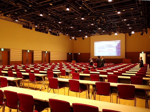 国内文具卸売企業様に新年度経営方針発表会場として3階ホールをご利用いただきました。当日は発表会の後、ビル内の第一ホテル両国の宴会場にて懇親会がおこなわれました。当会場ではケータリングパーティー以外に、レストラン・宴会予約も承っております。