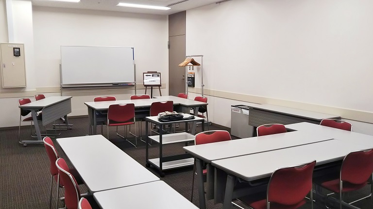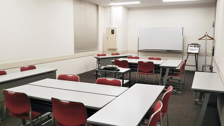 東京都内衛生設備会社様に社内向け技術習得研修の会場として6階会議室をご利用いただきました。島型形式のグループ研修で、部屋奥と手前の2組に分かれたレイアウトで行われました。